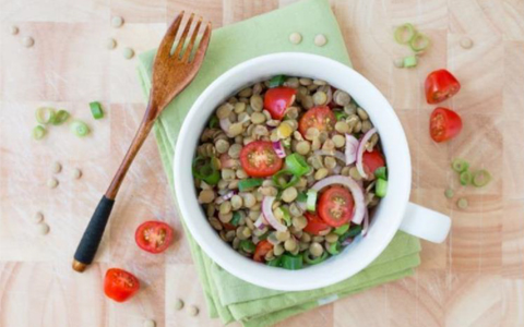 Um den Geschmack noch ein bisschen interessanter zu gestalten kann man den Linsensalat auch noch mit Zitronensaft verfeinern.