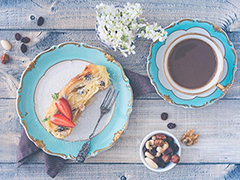 3 Blätter Strudelteig2 EL zerlassene ButterZutaten für die Rahmfüllung:350 g Quark (40 %)120 ml Sahne50 g weiche Butter60 g Puderzucker130 g Seeberger Studentenfutter1 Zitrone1 Prise Salz3 Eier (getrennt)40 g Speisestärke