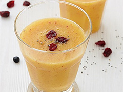 1 Mango1 Bio-Orange100 g Ananasfruchtfleisch1 TL Seeberger Chiasamen30 g Seeberger Superfrucht Selection1 EL Limettensaft300 ml Kokoswasser