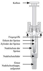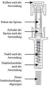 Jede Packung enthält eine Fertigspritze mit einem Nadelschutz.