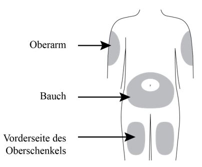 Injizieren Sie nicht in Bereiche, in denen die Haut empfindlich, verletzt, gerötet oder verhärtet ist. Vermeiden Sie, in Bereiche mit Narben oder Dehnungsstreifen zu injizieren.