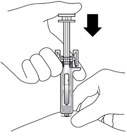 DRÜCKEN Sie den Kolben langsam und mit gleichmäßigem Druck, bis Sie ein „Klick” spüren oder hören. Drücken Sie nach dem Klick vollständig durch.