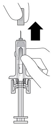 Ziehen Sie die graue Nadelschutzkappe vorsichtig und gerade ab, weg von Ihrem Körper.