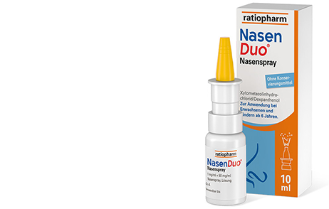NasenDuo® Nasenspray NasenDuo® Nasenspray Kinder Anwendungsgebiete: Zur Abschwellung der Nasenschleimhaut bei Schnupfen und zur unterstützenden Behandl. der Heilung von Haut- und Schleimhautschäden, anfallsweise auftretendem Fließschnupfen und zur Behandl. der Nasenatmungsbehinderung nach operativen Eingriffen an der Nase. -Nasenspray 1 mg/ml + 50 mg/ml Nasenspray ist für Erwachsene und Kinder ab 6 Jahren -Nasenspray Kinder 0,5 mg/ml + 50 mg/ml Nasenspray ist für Kinder zwischen 2 und 6 Jahren. Apothekenpflichtig. Zu Risiken und Nebenwirkungen lesen Sie die Packungsbeilage und fragen Sie Ihre Ärztin, Ihren Arzt oder in Ihrer Apotheke. 3/23.