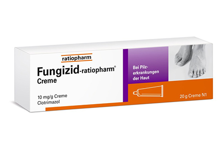 Fungizid-ratiopharm® Pumpspray Fungizid-ratiopharm® Creme Fungizid-ratiopharm® 200 mg Vaginaltabletten Fungizid-ratiopharm® Kombipackung Wirkstoff: Clotrimazol. Anwendungsgebiete: -Creme/Pumpspray: Pilzerkrankungen der Haut. Hinweis: Fungizid-ratiopharm® Pumpspray nicht auf Schleimhäuten und im Genitalbereich anwenden. –200 mg Vaginaltabletten: Infektiöser Ausfluss bedingt durch Candida, Entzündungen der Vagina durch Pilze. Warnhinweis: -Pumpspray enth. Propan-2-ol, Propylenglykol u. Benzylalkohol. -Creme: AM enth. Cetylstearylalkohol u. Benzylalkohol. Benzylalkohol kann leichte lokale Reizungen u. allerg. Reaktionen hervorrufen. Apothekenpflichtig. Zu Risiken und Nebenwirkungen lesen Sie die Packungsbeilage und fragen Sie Ihre Ärztin, Ihren Arzt oder in Ihrer Apotheke. 12/19 (-Pumpspray); 2/23 (-Kombi), 8/14 (-200 mg Vaginaltbl.); 3/24 (-Creme).