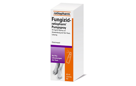 Der Wirkstoff Clotrimazol ist auch als Pumpspray erhältlich. Fungizid-ratiopharm® Pumpspray wird 2-mal täglich auf die erkrankten Stellen dünn aufgesprüht. Um Rückfälle vorzubeugen, sollte trotz rascher subjektiver Besserung ca. 2 Wochen über das Verschwinden aller Krankheitszeichen hinaus weiter behandelt werden.