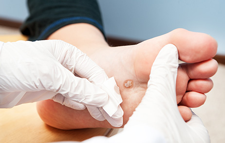 Diese Form der Warzen bildet sich auf der Fußsohle und wächst in die Haut hinein. Dornwarzen sind meist von einer Hornschwiele bedeckt und können in der Tiefe große Ausmaße annehmen, was besonders im Fersenbereich sehr unangenehm und schmerzhaft ist.
