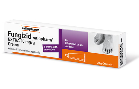 Fungizid-ratiopharm® EXTRA Wirkstoff: Terbinafinhydrochlorid. Anwendungsgebiete: Pilzinfektionen der Haut, die durch Dermatophyten wie Trichophyton, Microsporum canis und Epidermophyton floccosum verursacht werden. Hefeinfektionen der Haut, hauptsächlich jene, die durch die Gattung Candida verursacht werden. Pityriasis (Tinea) versicolor, verursacht durch Pityrosporum orbiculare (Malassezia furfur). Warnhinweis: AM enth. Cetylstearylalkohol, Cetylalkohol u. Benzylalkohol. Apothekenpflichtig. Zu Risiken und Nebenwirkungen lesen Sie die Packungsbeilage und fragen Sie Ihre Ärztin, Ihren Arzt oder in Ihrer Apotheke. 11/25.