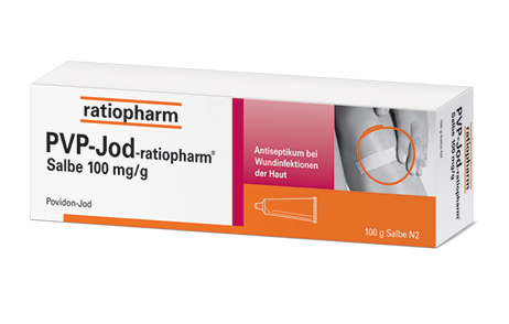 PVP-Jod-ratiopharm® Salbe Wirkstoff: Povidon-Jod. Anwendungsgebiete: Zur wiederholten, zeitlich begrenzten oberflächlichen Anwendung bei Schnitt- und Schürfwunden, Verbrennungen und Verbrühungen, infizierten und superinfizierten Hauterkrankungen, Druck- und Unterschenkelgeschwüren (Decubitus, Ulcus cruris). Apothekenpflichtig. Zu Risiken und Nebenwirkungen lesen Sie die Packungsbeilage und fragen Sie Ihre Ärztin, Ihren Arzt oder in Ihrer Apotheke. 11/23.