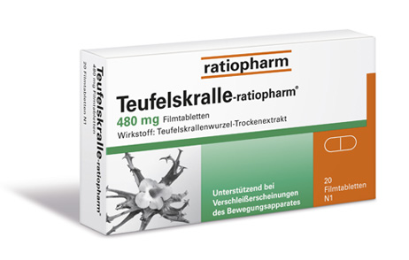 Teufelskralle-ratiopharm® ist ein pflanzliches Arzneimittel, das sanft entzündungshemmend und schmerzlindernd wirkt. Teufelskralle-ratiopharm® wird angewendet zur unterstützenden Behandlung bei Verschleißerscheinungen des Bewegungsapparates. Die Dauer der Anwendung ist prinzipiell nicht begrenzt und nach dem Krankheitsbild zu richten.