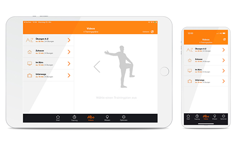 Einfach die kostenlose App herunterladen und sofort mit dem Training beginnen. Sehen Sie sich die Übungen an und befolgen Sie dann die Anweisungen des Trainers. Stellen Sie sich auch ganz einfach ein individuelles Training für Ihre spezielle Situation zusammen.