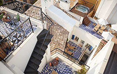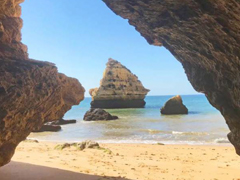 Das Resort ist aber auch idealer Ausgangspunkt, um einen der beeindruckendsten Abschnitte der Felsenküste auf einer Wanderroute zu erkunden: die sieben „Vales Suspensos“. Ihren Namen, zu deutsch „hängende Täler“, verdankt die Route sieben Wasserläufen, die die Felsenküste unterbrechen und im Laufe der Jahre die Täler ausbildeten. Eine solche einzigartige Felsformation ist „Algar Seco“, gleich oberhalb von Carvoeiro und nur zehn Fußminuten vom Hotel entfernt. Über Jahrtausende von Jahren haben Wind und Wellen an dem seltenen Naturschauspiel gefeilt und die Felsen aus Muschelkalk geformt und ausgehöhlt. So entstanden die rötlich-gelben Grotten, Höhlen und Formen, denen der Betrachter heute atemlos begegnet. Zu diesem Areal gehört auch die „Boneca“ (Puppe), eine kleine Höhle mit zwei Gucklöchern, die an einen Puppenkopf erinnern soll. Hier hineinzuklettern und dann durch die „Augen“ der Puppe auf Meer und Sonnenuntergang hinauszuschauen, ist ein Moment, den man gerne als Foto festhält und so schnell nicht vergisst.