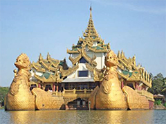 Die Altstadt, das Downtown im Süden der Stadt, ist der belebteste Teil Yangons. Hier trifft einheimisches Leben auf neugierige Touristen. Märkte, Shoppingmeilen, Bars, Cafés, Teehäuser, sind die richtigen Orte um in Kontakt mit den immer aufgeschlossenen und freundlichen Menschen zu kommen. Der von Engländern künstlich angelegte Kandawgyi See, der Name bedeutet „Großer königlicher See“, mitten im Stadtgebiet mit seiner immergrünen Parkanlage ist ein Paradies für Ruhe und Erholungsuchende. Die gute Luft, neben dem Smog in den großen Straßen, ist ein guter Grund hierherzukommen. Gebaut wurde der künstliche See in der Kolonialzeit um die Wasserversorgung der Stadt zu gewährleisten. Am Ufer des Sees liegt das prunkvolle historische Gebäude, der Karaweik Palast, im Stil eines alten burmesischen Schiffes. Mit viel Gold und Symbolik.